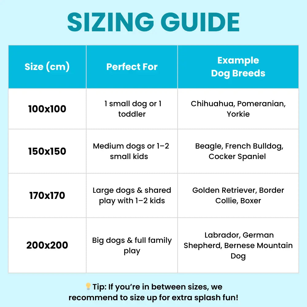 100 × 100 cm is ideal for toy breeds and solo splashes.